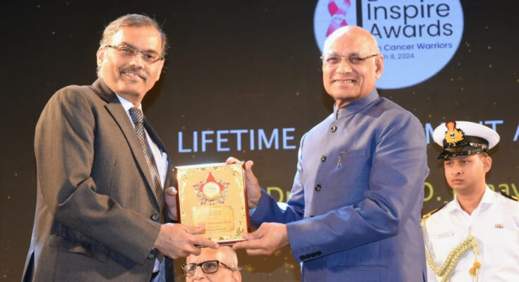 यावेळी राज्यपालांच्या हस्ते प्रसिद्ध कर्करोगतज्ज्ञ डॉ. सुरेश अडवाणी, टाटा मेमोरियल हॉस्पिटलचे माजी अधिष्ठाता डॉ. राजेंद्र बडवे व अधिष्ठाता डॉ. श्रीपाद बाणावली यांना जीवन गौरव सन्मान देण्यात आला. कॅन्सरवर मात करणाऱ्या महिला तसेच विविध क्षेत्रातील २० कर्करोगयोद्धे यांना यावेळी ‘आय इन्स्पायर पुरस्कार’ देण्यात आले.